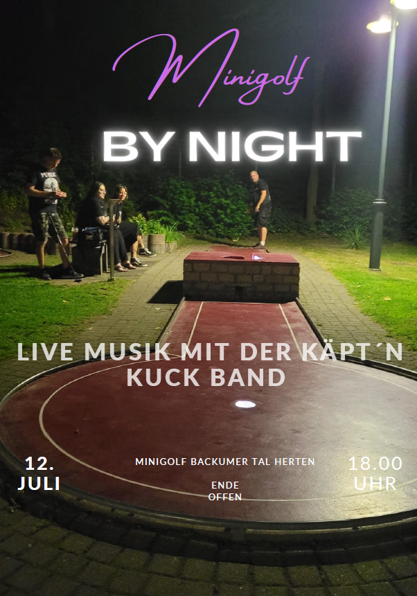 Auch in diesem Jahr bietet der BGV Backumer Tal Herten das beliebte Nachtgolfen an. Ab 18.00 Uhr begrüßen wir unsere Gäste mit Live Musik von der Käpt´n Kuck Band, die die Teilnehmerinnen und Teilnehmer bei der DM bestens unterhalten haben.